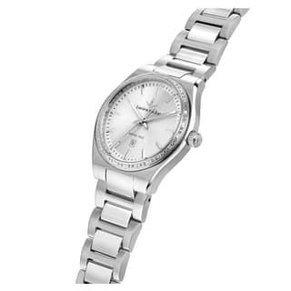 ساعت زنانه لوسین روشا R0453122524 از مجموعه «Avenue»، جلوهای متمایز از ظرافت و شکوه در سبک مونث را به نمایش میگذارد. قاب ۳۴ میلیمتری استیل صیقلی با ضخامت تقریباً ۸٫۴ میلیمتر، تناسبی ایدهآل برای مچهای ظریف ایجاد میکند و تزئینات نگین در دور قاب، جلوهای جواهری و لوکس به آن بخشیده است.
