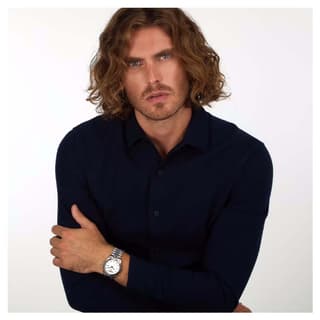 ساعت مردانه لوسین روشا مدل R0453124004 از مجموعه «Bienne»، ترکیبی از طراحی کلاسیک و جزئیات مدرن است که برای استفاده روزمره و موقعیتهای رسمی مناسب است. قاب استیل با پرداخت صیقلی و ساتن در ابعاد ۳۹ میلیمتر قطر و ۱۱ میلیمتر ضخامت، ظاهری متعادل و شیک بر مچ دست ایجاد میکند. صفحه نقرهای با طراحی مینیمالیستی و شیشه معدنی با پوشش سافایر ضدخش، علاوه بر زیبایی، مقاومت بالایی در برابر خطوخش دارد.