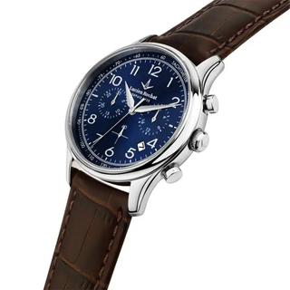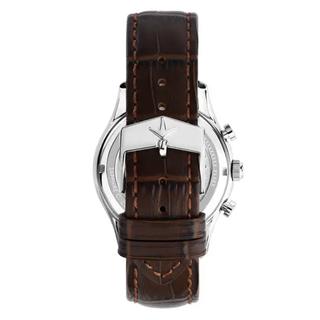 ساعت مردانه لوسین روشا مدل R0471615001 از مجموعهی «مونترو»، با طراحی اسپرت-کلاسیک و جزئیات دقیق، ترکیب جذابی از زیبایی و کارایی را ارائه میدهد. قاب ۴۱ میلیمتری استیل صیقلی به رنگ نقرهای همراه با ضخامت تقریبی ۱۰٫۸۵ میلیمتر، ظاهر باریک و متعادل دارد که برای مچ متوسط مناسب است. صفحه این مدل به رنگ کلاسیک با بند چرم طبیعی قهوهای تکمیل شده، ترکیبی از راحتی و جلوه طبیعی را روی مچ ایجاد میکند.