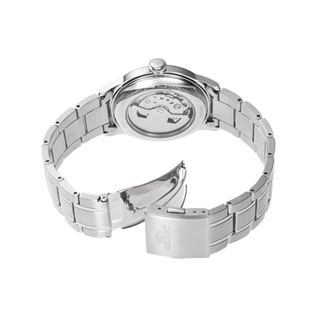 قطر قاب 38.4 میلیمتری، این محصول را به انتخابی عالی برای استایلهای کلاسیک تبدیل میکند. Orient RA-AC0M11Y30B توسط یک موتور مکانیکی Orient F6724 با ذخیره انرژی 40 ساعت تغذیه میشود. فعالیت موتور به لطف صفحه شفاف پشت قاب، قابلمشاهده است. مقاومت این ساعت اتوماتیک مردانه در برابر آب تا 30 عمق متر است، بنابراین ساعت در هنگام شستشوی دست و برخورد باران مقاومت میکند.