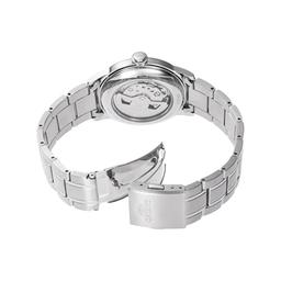 ساعت مچی اورینت RA-AC0M11Y30B که با نام Orient Bambino شناخته میشود، متعلق به سری Orient Classic است و برای استایلهای روزمره و کلاسیک مناسب است. ویژگیهای بامبین اورینت، شیشههای گنبدی، صفحه خمیده و ظاهر و ساده کلاسیک است. صفحه صورتی این مدل، توسط یک کریستال سافایر ضد خش محافظت میشود. ساعت مجهز به نمایشگر تاریخ در موقعیت ساعت 3 است. بدنه استیل نقرهای با یک بند کلاسیک فولادی سه ردیفه تکمیل شده است.