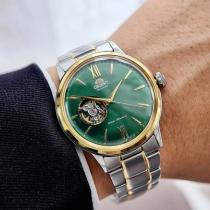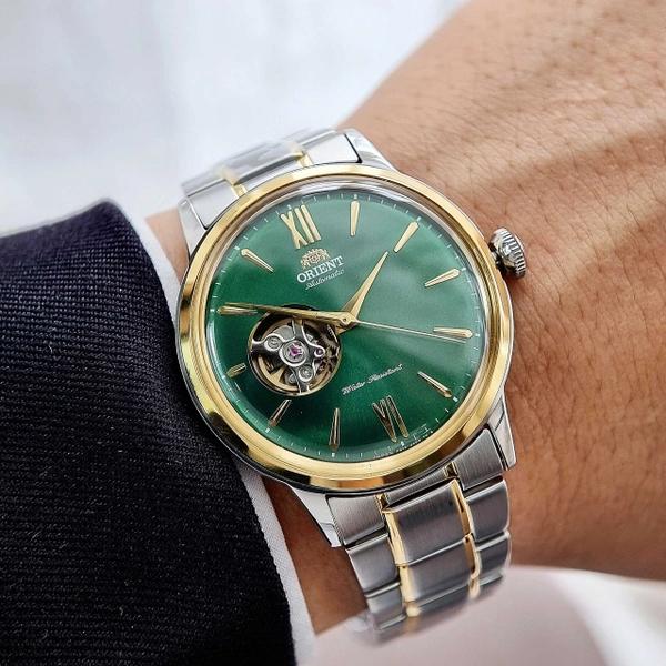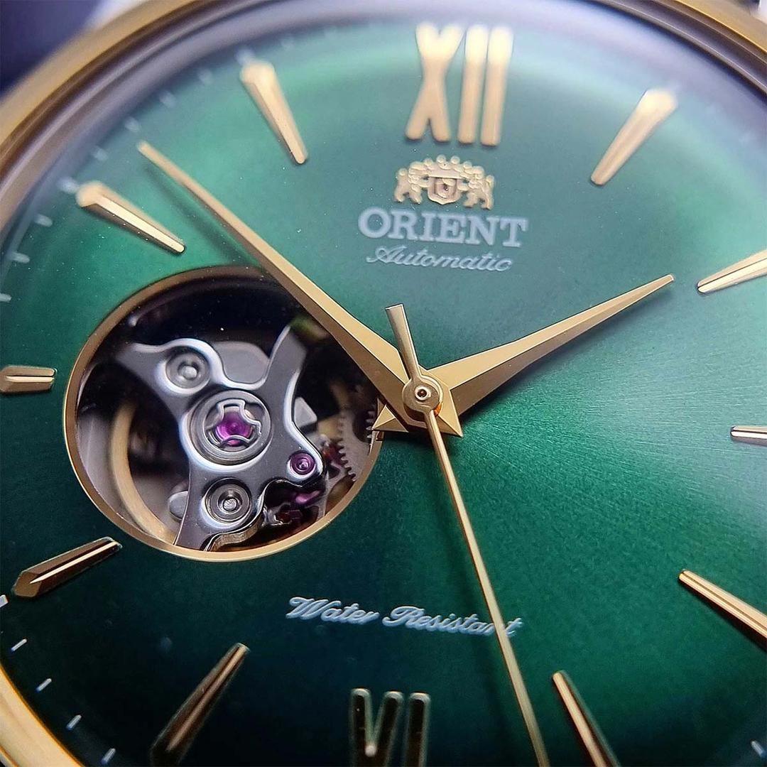 قاب نقرهای-طلایی دستگاه 41 میلی متر قطر دارد و از جنس استیل ضدزنگ است. از طریق مکانیزم اسکلتون روی صفحه و قاب شفاف پشتی، عملکرد موتور اتوماتیک کاملا مشخص است. صفحه سبز رنگ ساعت مردانه اورینت RA-AG0432E00C با شیشه کریستال سافایر محافظت میشود و مقاومت بالایی را ارائه میدهد. مقاومت دستگاه در برابر آب تا عمق 30 متری است، بنابراین میتوانید در فعالیتهای روزمره و حتی هنگام شستن دستها، از آن استفاده کنید.