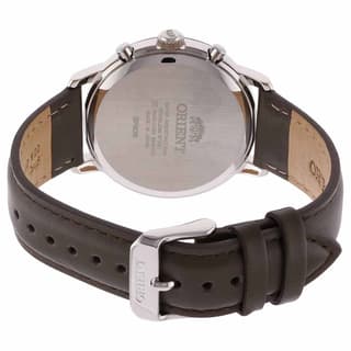 ساعت مچی مردانه کرنوگراف اورینت مدل RA-KV0304Y00C طراحی کلاسیک و کژوال را به همراه بند چرمی قهوه ای رنگ و بدنه نقره ای ارائه میدهد. موومنت این ساعت کوارتز است و فول تایم میباشد.