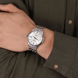 Seiko Presage SRPG23J1 یک ساعت شیک و کژوال، برای استایلهای روزانه و رسمی است. قاب و بند نقرهای دستگاه، از جنس استیل ضدزنگ هستند. صفحه سفید ساعت مچی اتوماتیک معرفی شده، توسط یک شیشه هاردلکس محدب محافظت میشود. این مدل دارای نمایشگر تاریخ در موقعیت ساعت 3 است. استفاده از لومینسانس روی دستها خوانایی بهتر در شرایط نور کم را تضمین میکند.