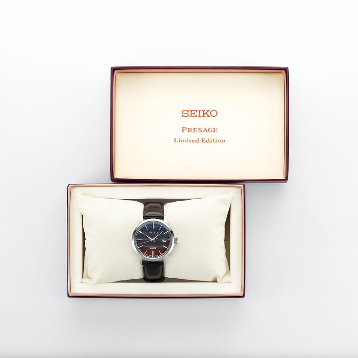 ساعت سیکو مردانه مدل SRPK75J1 به تعداد محدود، فقط در 9000 عدد کنترلشده با شمارهسریال تولید در پشت قاب ارائه شده است. Presage Cocktail Time با طراحی شیک و ویژگیهای بارز خود، انتخابی مناسب برای آقایان خاصپسند است. قاب استفاده شده از جنس استیل ضدزنگ طراحی شده که مقاومت بالایی در برابر ضربه و خط و خش دارد. همچنین بندچرمی قهوهای طراحی این اکسسوری را تکمیل میکند.
