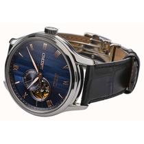 بدنه استیل Seiko SSA421J1 با یک بندچرمی تکمیل شده است که ظاهری بسیار زیبا به ساعت میدهد. صفحه با رنگ آبی دارای عقربههای رز گلد متضاد است که توسط کریستال سافایر قوسدار محافظت میشود.