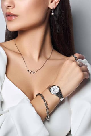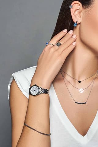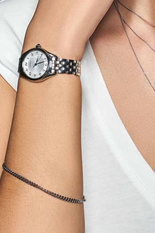 از کالکشن اسنشیالز سیکو. با طراحی قاب ساده و دایره ای، مدل SUR379 برای قرار گیری راحت روی مچ طراحی شده است. صفحه ساعت دارای طرح خطی از مرکز به بیرون صفحه و دارای ایندکس های عددی انگلیسی و عقربه های سرمه ای رنگ است.