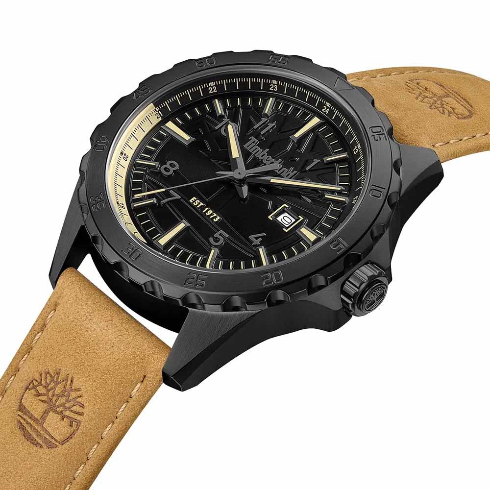 تیمبرلند مدل TDWGB0055803، از سری Day Pond، ترکیبی از طراحی مدرن و عملکرد کاربردی را ارائه میدهد. این ساعت مچی مردانه بند چرمی مارک دار با قطر 45 میلیمتری قاب از جنس استیل ضدزنگ و رنگ مشکی مات، ظاهری مقاوم و جذاب دارد. صفحه مشکی آن با شیشه معدنی مقاوم در برابر خش پوشانده شده و از عقربههای شبنما برای وضوح بیشتر در نور کم بهره میبرد.