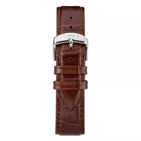 ساعت مچی مردانه تایمکس مدل TW2R72100 به موومنت کرنوگراف و بدنه استیل ضدزنگ مجهز شده است. این ساعت با صفحه سفید و بدنه نقره ای و بند چرمی قهوه ای طراحی شده است و تا عمق 30 متر ضد آب است.