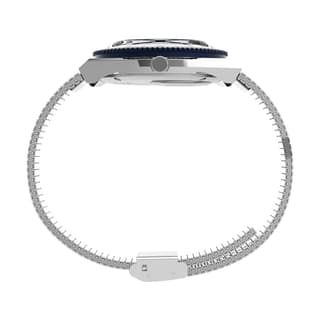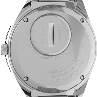 ساعت تایمکس مدل TW2U95500 از مجموعه Q Timex Reissue است و با طراحی کلاسیک خود، یادآور دوران طلایی ساعت های مچی مردانه کوارتز میباشد. این محصول دارای قاب استیل ضدزنگ 36 میلیمتری با ضخامت 12 میلیمتر است. صفحهنمایش آن به رنگ سرمهای جذاب بوده و دارای نمایش آنالوگ، عقربههای شبتاب و نمایشگرهای روز و تاریخ میباشد.