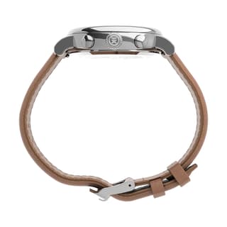 صفحه شفاف خاکستری با عقربهها و نشانگرهای شبنما، توسط شیشه معدنی محافظت میشود. در داخل کیس یک موتور کوارتز دقیق تعبیه شده است. مقاومت این ساعت در برابر آب 50 متر است، بنابراین میتواند شستن دست یا دوشگرفتن سریع را تحمل کند، اما به دلیل استفاده از بند چرمی، توصیه میکنیم از برخورد آب به آن خودداری کنید. به لطف قطر قاب ۴۱ میلیمتری، خرید ساعت تایمکس معرفیشده گزینهای مناسب برای اکثر آقایان (مناسب برای انواع مچ دست) محسوب میشود.