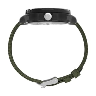 صفحه سبز آن با عقربههای بزرگ سفید و نارنجی، به همراه نمایشگر تاریخ، خوانایی کاملی را ارائه میدهد. محافظت از صفحه بر عهده یک شیشه معدنی است. ساعت timex معرفی شده دارای یک بزل (Bezel) یکطرفه برای زمانبندی غواصی یا سایر رویدادها میباشد. مقاومت در برابر آب آن تا 50 متر است که برای شنای سبک مناسب است؛ اما برای غواصی سطحی یا عمیق خیر. بند سبز 22 میلیمتری آن نیز از برزنت (متریال بازیافتی)ساخته شده و با یک سگک بسته میشود.