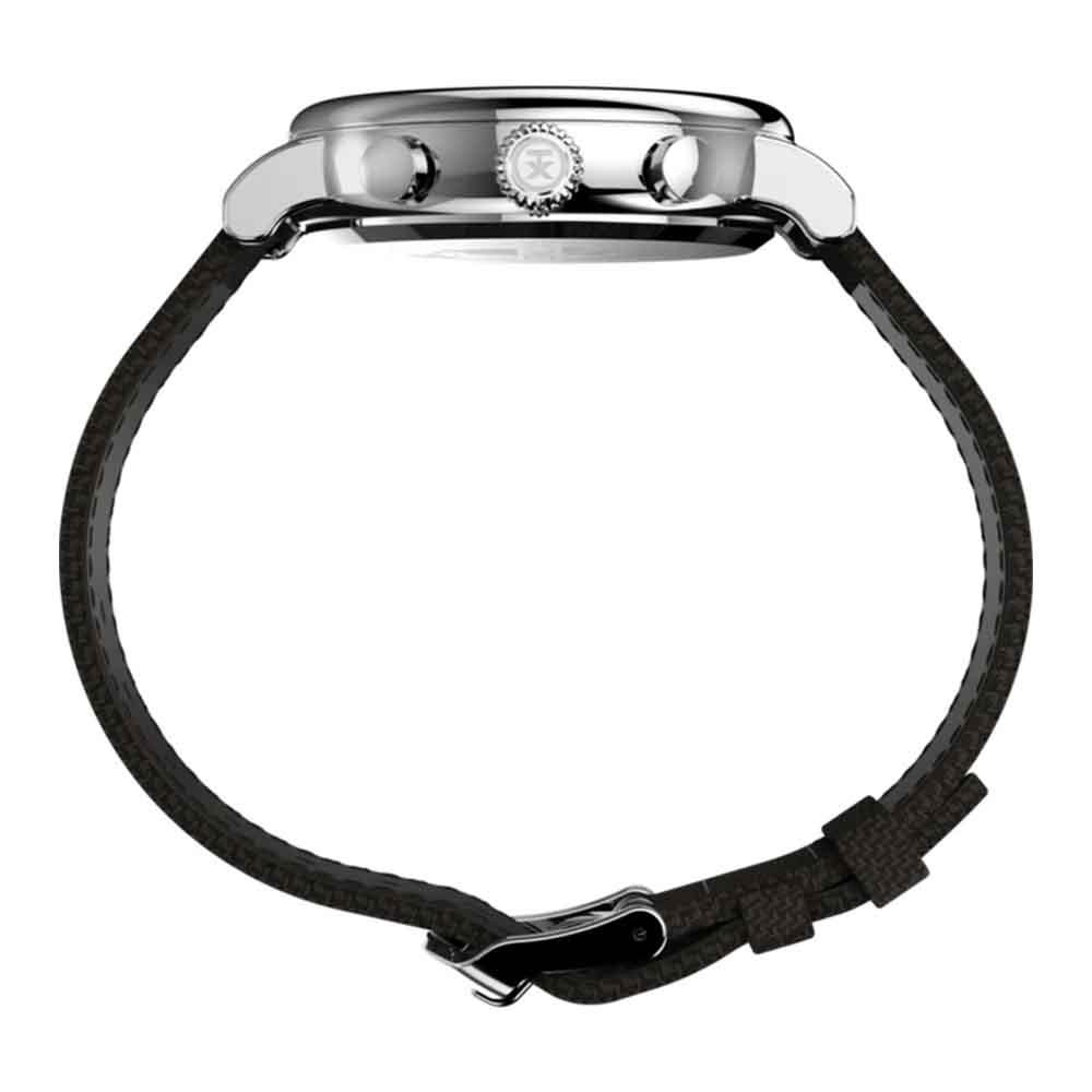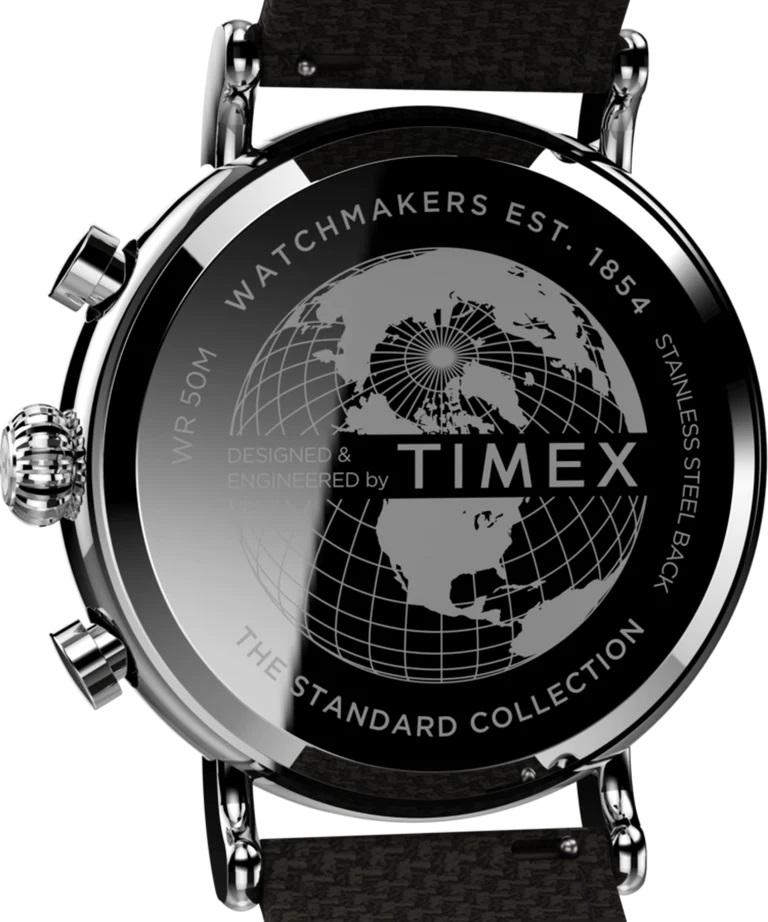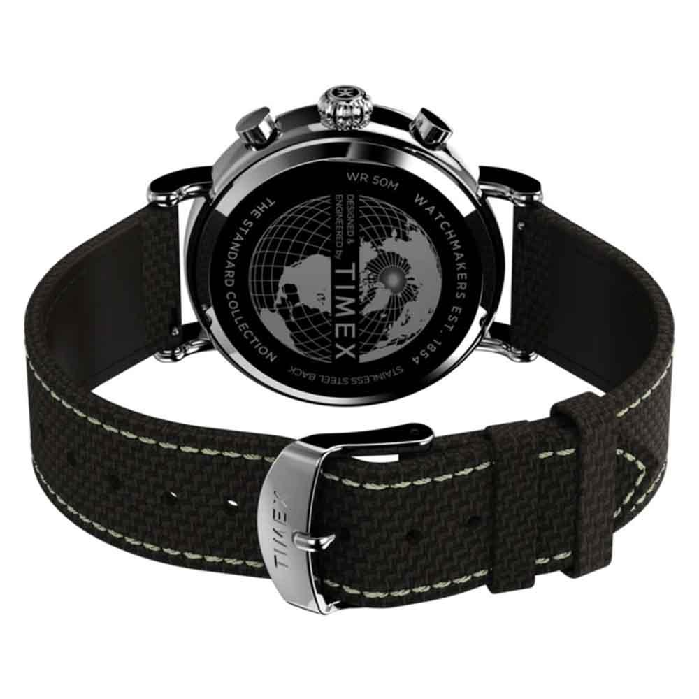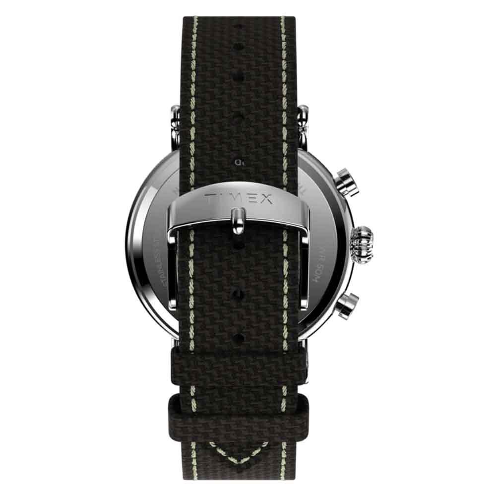 ساعت مچی مردانه کرنوگراف تایمکس مدل TW2V43800 طراحی شده از جنس بدنه ی استیل ضدزنگ و بند پارچه ای است. این ساعت دارای قطر صفحه 41 میلی متر است و تا عمق 50 متر مقاوم در برابر آب.