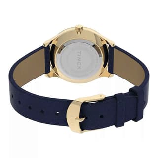 ساعت مچی زنانه تایمکس مدل TW2V49300 به سبک کلاسیک طراحی شده و دارای بند چرمی و بدنه ی طلایی رنگ از جنس استیل ضدزنگ است، قطر صفحه ی این ساعت 32 میلی متر و تا عمق 30 متر در برابر آب مقاوم است.
