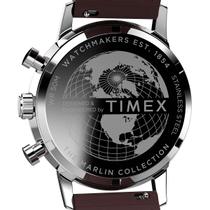ساعت مچی مردانه Timex Marlin Chronograph Tachymeter دارای یک قاب استیل ضدزنگ با قطر تقریبی 40 میلیمتر و یک صفحهنمایش سرمهایرنگ با سه زیر صفحه کرنوگراف و نشانگرهای نقرهای با جزئیات شبنما است. یک مقیاس تاچیمتر بر روی زه ساعت برای اندازهگیری سرعت تعبیه شده است و یک پنجره نمایش تاریخ نیز در موقعیت بین ساعت 4 و 5 قرار دارد.