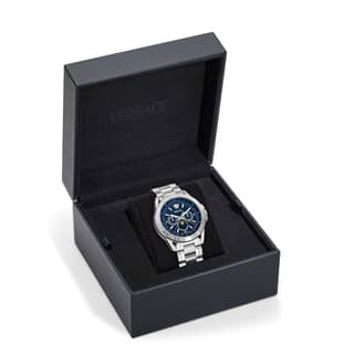 ساعت Versace VE0K00125 V-Galaxy Moonphase یک ساعت مردانه لوکس و مدرن از ورساچه است که با تلفیق زیبایی طراحی ایتالیایی، دقت ساعتسازی سوئیسی و عملکرد پیچیده، جلوهای چشمگیر و حرفهای روی مچ شما ایجاد میکند. این مدل از کلکسیون «V-Galaxy Moonphase» با امکانات تقویمی کامل و نمایش Moonphase (فاز ماه) در صفحه، هم کاربردی است و هم در سبک لوکس جایگاه ویژهای دارد.