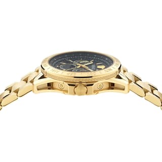 ظاهر ساعت با قاب گرد 43 mm از استیل ضدزنگ با پوشش طلایی IP و صفحهی مشکی کلاسیک، ترکیبی از زیبایی مدرن و وقار کلاسیک را ارائه میدهد — تعادلی که در ساعتهای لوکس مردانه بسیار ارزشمند است. کرونوگراف گرافیک، جلوههای نور و بافتهای دقیق روی صفحه باعث میشوند ساعت در هر زاویهای هویت بصری قدرتمند خود را نشان دهد.