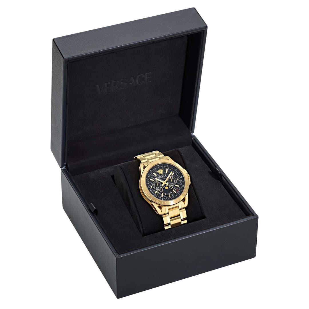 ساعت Versace V-Galaxy Moonphase VE0K00425 نمادی از طراحی لوکس ایتالیایی و مهندسی دقیق سوئیسی است — انتخابی عالی برای آقایانی که میخواهند هم استایل برجسته و باشکوه و هم عملکرد فنی قابلاعتماد را در یک ساعت تجربه کنند. این مدل از کلکسیون V-Galaxy Moonphase با امکانات چندگانه و دیزاین منحصربهفرد، جلوهای بسیار چشمگیر روی مچ ایجاد میکند.