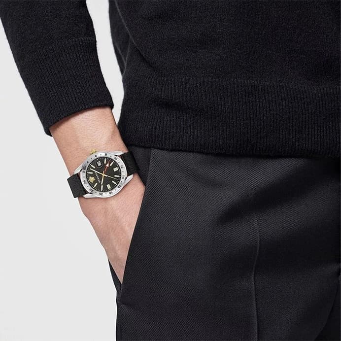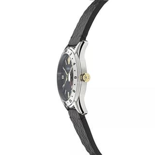 بند این ساعت از چرم طبیعی مشکی با الگوی Greca برجسته ساخته شده و با قفل سگکی کلاسیک (Buckle Clasp) راحتی، امنیت و دوام بالا را در استفادهی روزمره فراهم میکند، در حالی که ترکیب رنگها و مواد باعث میشود ساعت بهعنوان یک اکسسوری لوکس و حرفهای در استایل مردانه بدرخشد.
