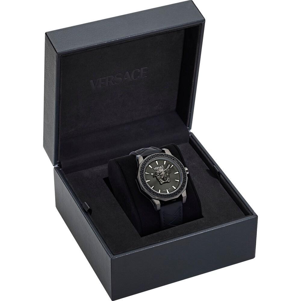 بند ساعت از جنس چرم طبیعی، باکیفیت بالا ساخته شده و با بدنه هماهنگی کامل دارد. محصول معرفی شده تا عمق 50 متر در برابر آب مقاوم است و برای استفاده روزمره و حتی شنا در استخر مناسب است. این ساعت دارای کرونوگراف، تقویم روزشمار و عقربههای شبتاب است. طراحی این اکسسوری با الهام از سبک و سیاق برند ساعت ورساچه، ظاهری لوکس و کلاسیک به آن بخشیده است.