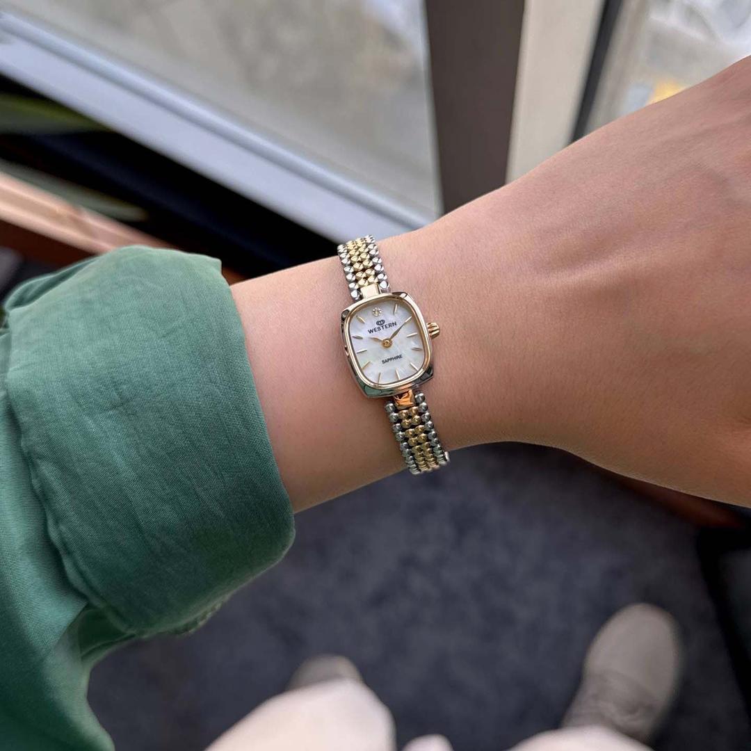 قاب استیل ضدزنگ با پوشش طلایی و نقرهای جلوهای لوکس و بادوام به محصول میبخشد و صفحه با شاخصهای هماهنگ، خوانایی و زیبایی را بهطور همزمان تأمین میکند. بند فلزی دو رنگ با قفل سگکی راحتی و دوام بالا را فراهم کرده و امکان استفاده روزمره و رسمی را به خوبی ایجاد میکند.